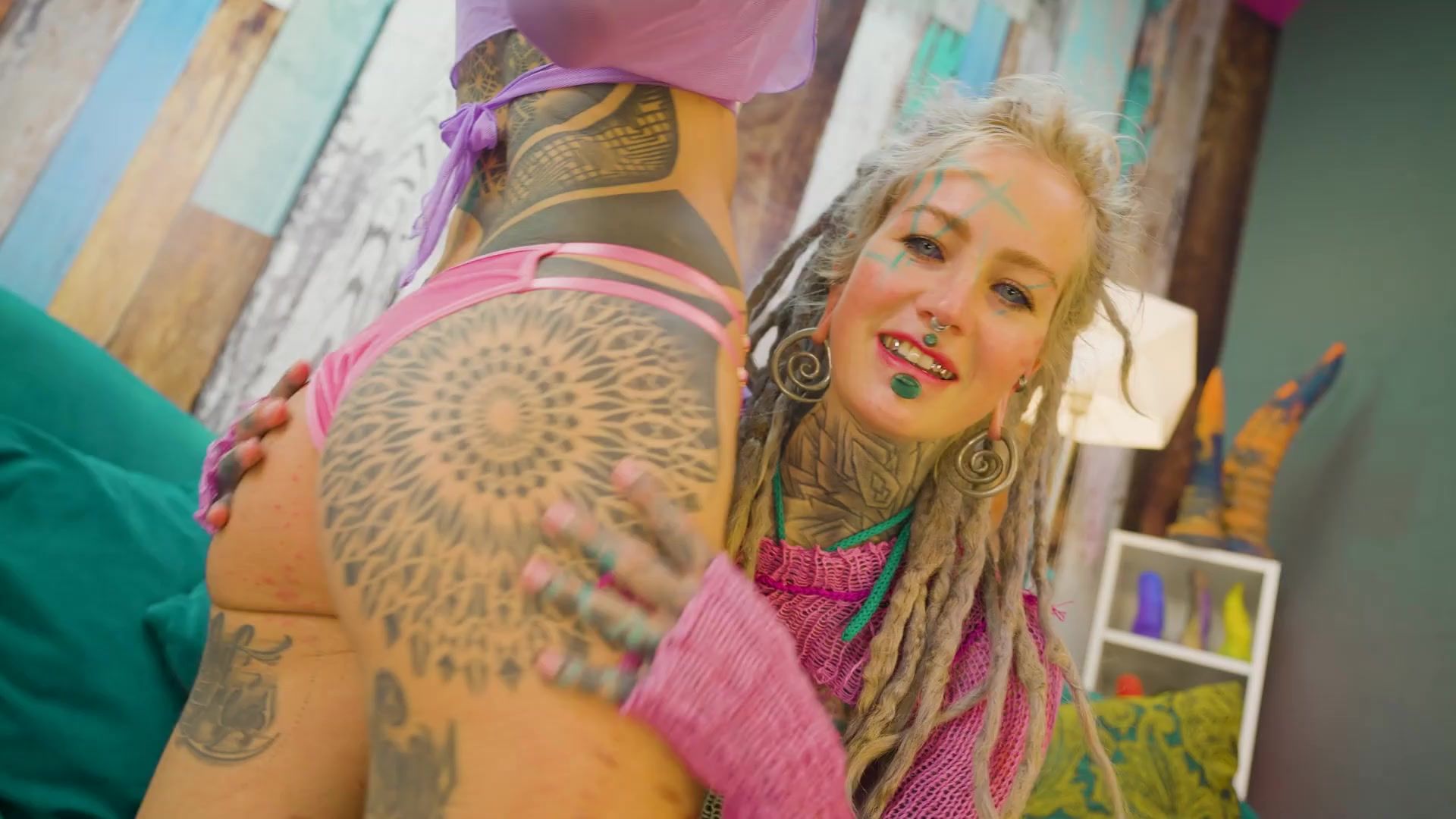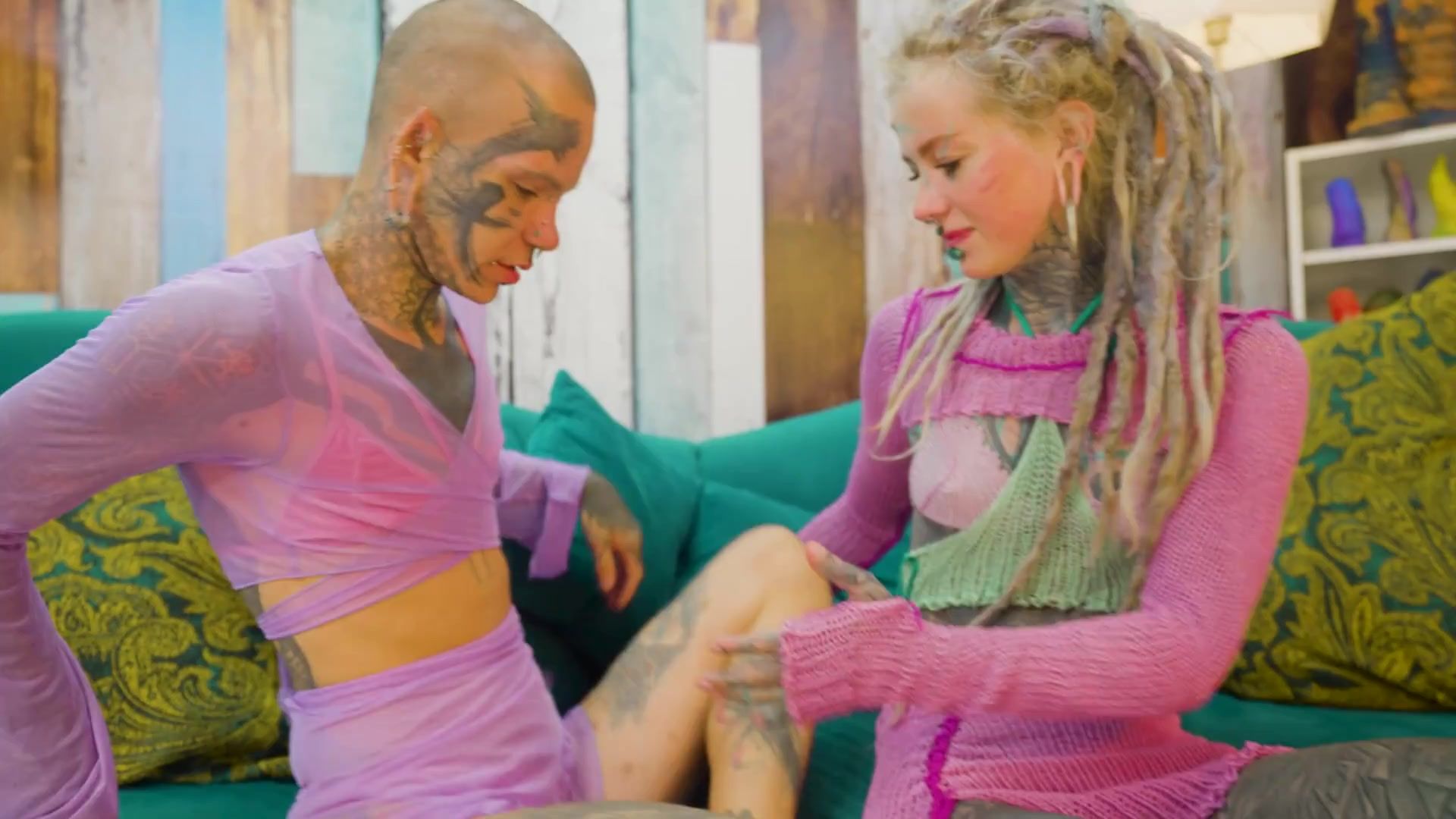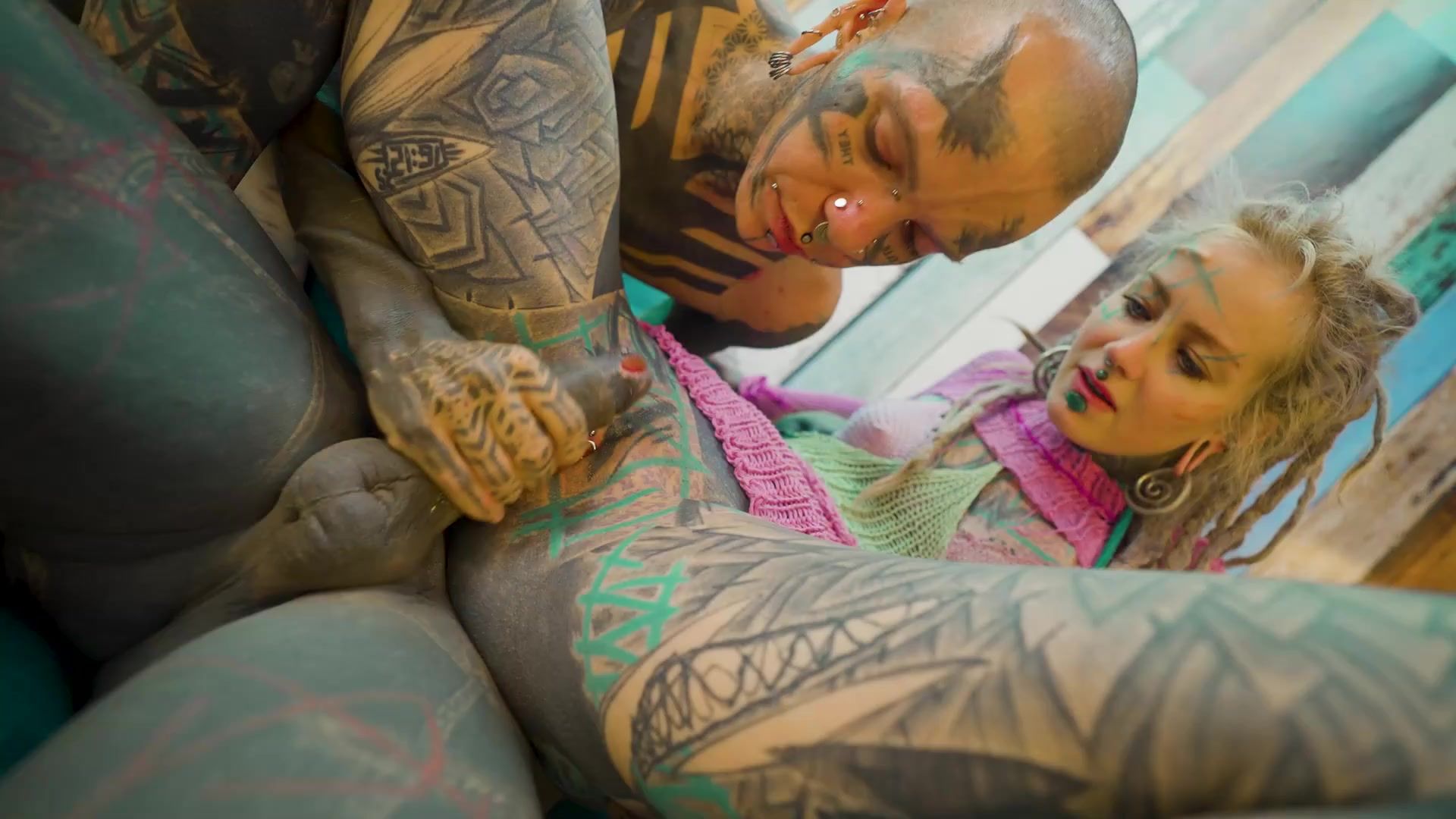 Trans Dark Leaves Shares Very first Mighty Vignette with Inked Duo – A2M & Facial cumshot