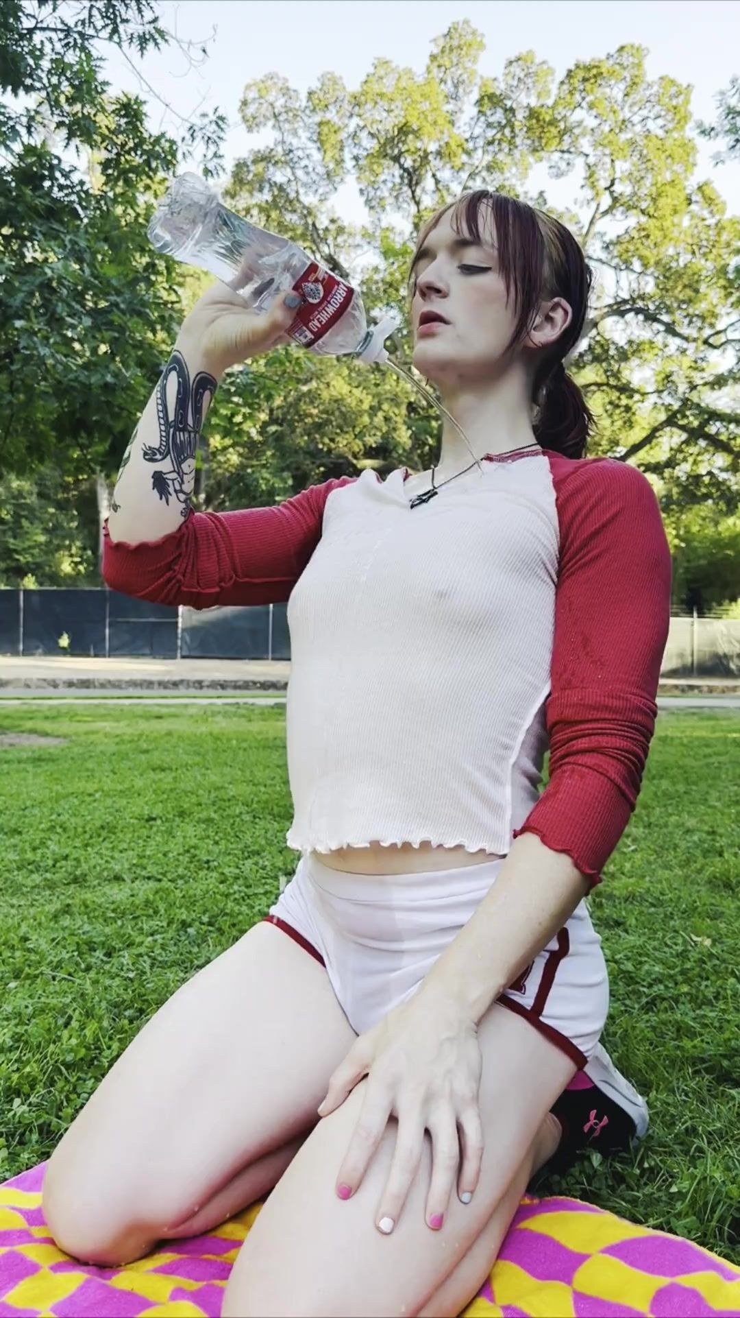 Wondrous Crossdresser at the park getting prepared to embark flapping on the sway ...