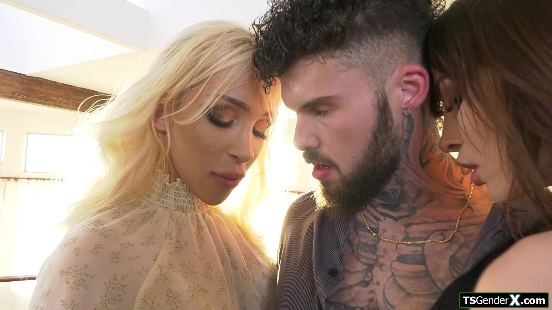 Big tits shemale gfs Korra Del Rio and Angelina Please know no guy can resist them.The tgirls give a double blowjob.He deepthroats both tranny dicks and rim their asses.The brunette ts sits in his cock with her trans gf bareback anal riding her boner