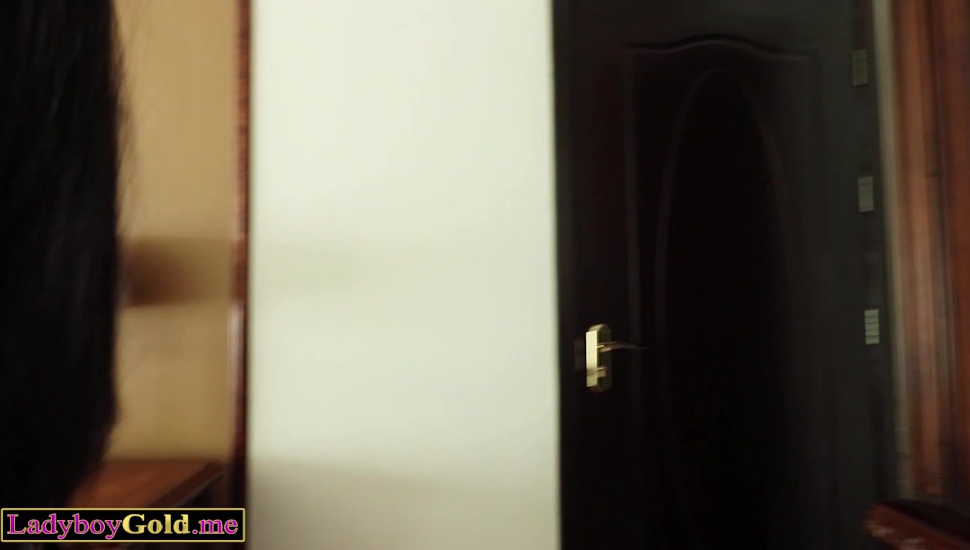 Scantily covered amateur Thai ladyboy teen Natty serving her perv client