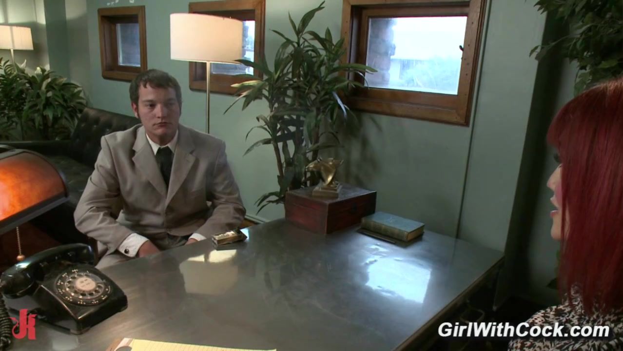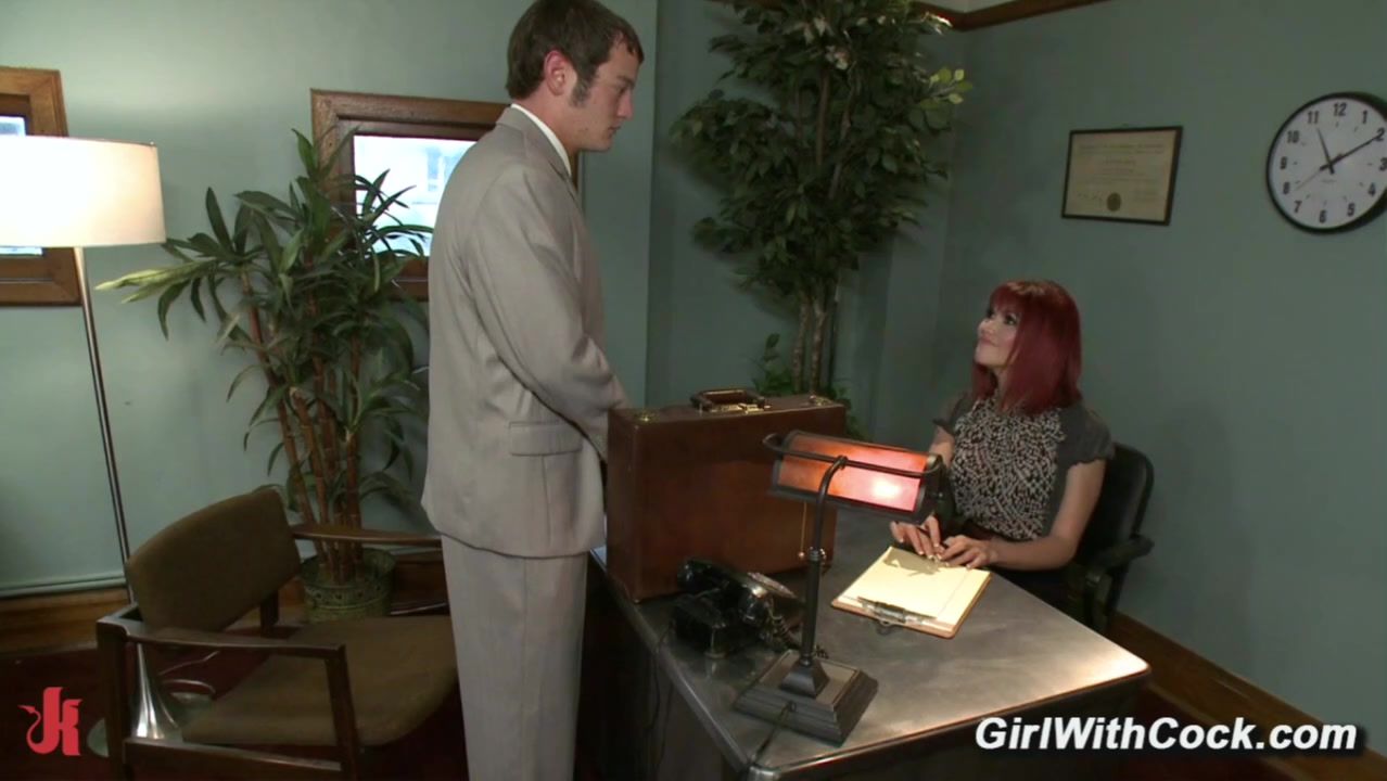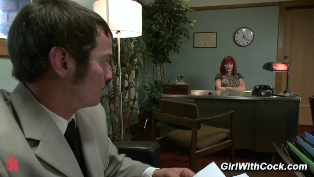 An arrogant intern Mike J tries to bully the sexy shemale secretary Eva Lin she expertly turns the tables seduces him and fucks his deep throat and anal pounds him in doggy position in the office