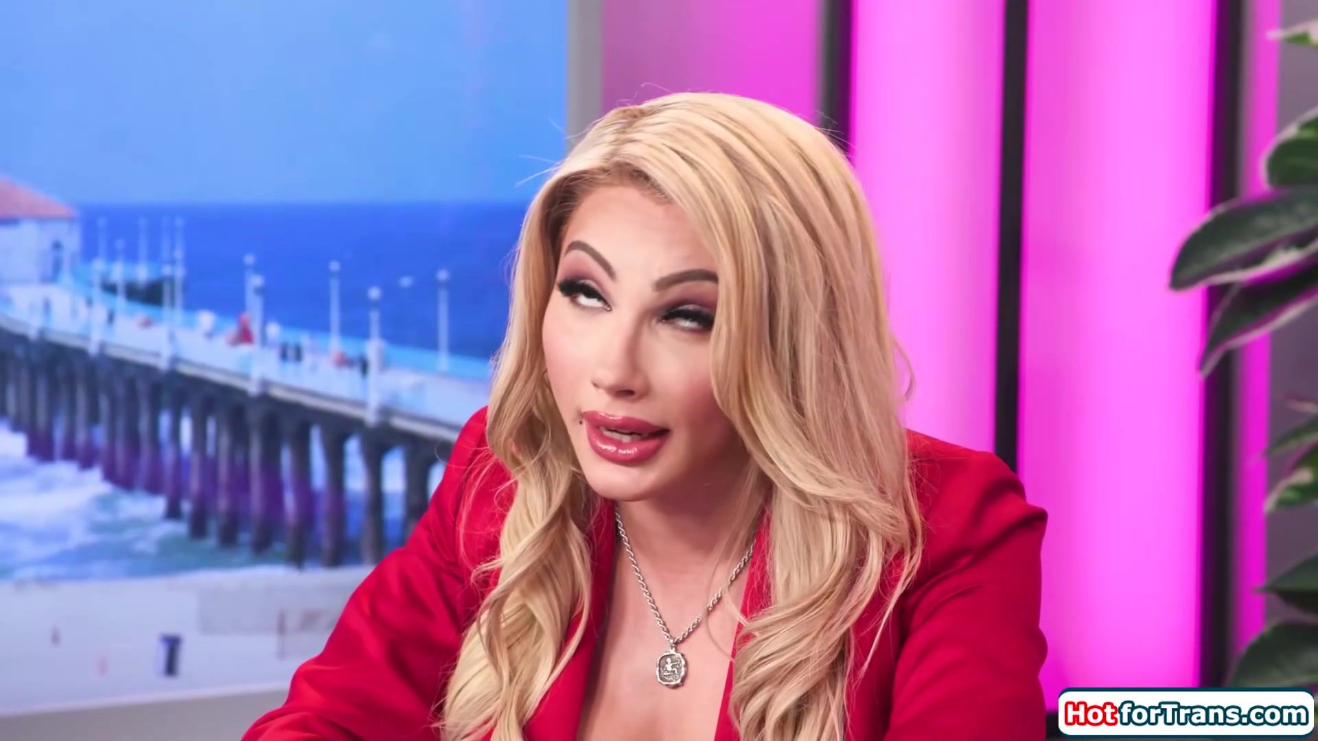 Busty shemale news anchor Ariel Demure gets her big tranny dick sucked by Destiny Mira during a live broadcast.Her latin trans colleague Avery Lust joins the fun.Technical difficulties give the trans babes the time they need to anal fuck each other