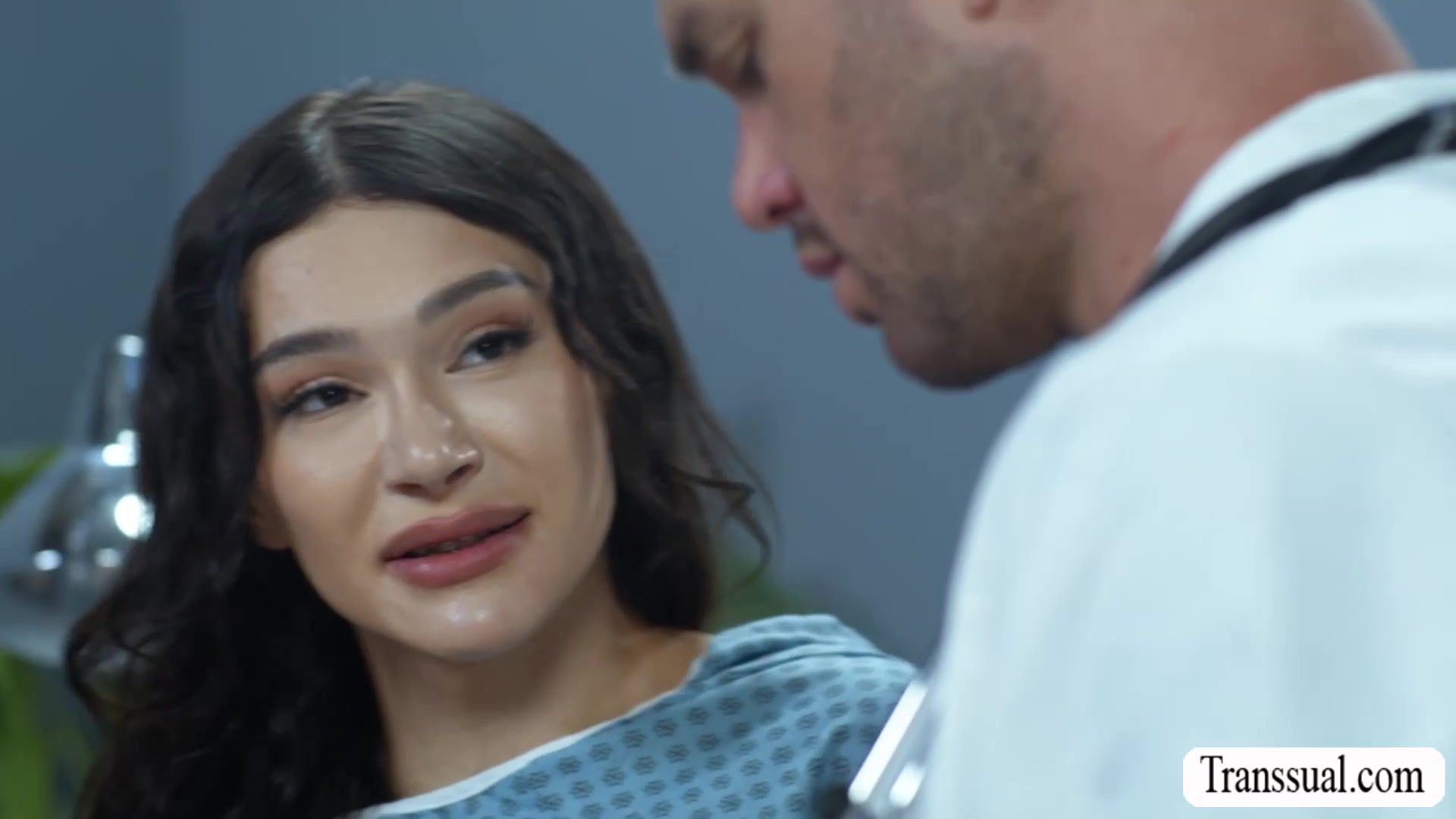 Super hot and gorgeous shemale in in the clinic and let the doctor checks up her body.After that,she throats his hard big cock passionately and in return,he bareback fucks my ass so hard.Go to Transsual.com for more like this.
