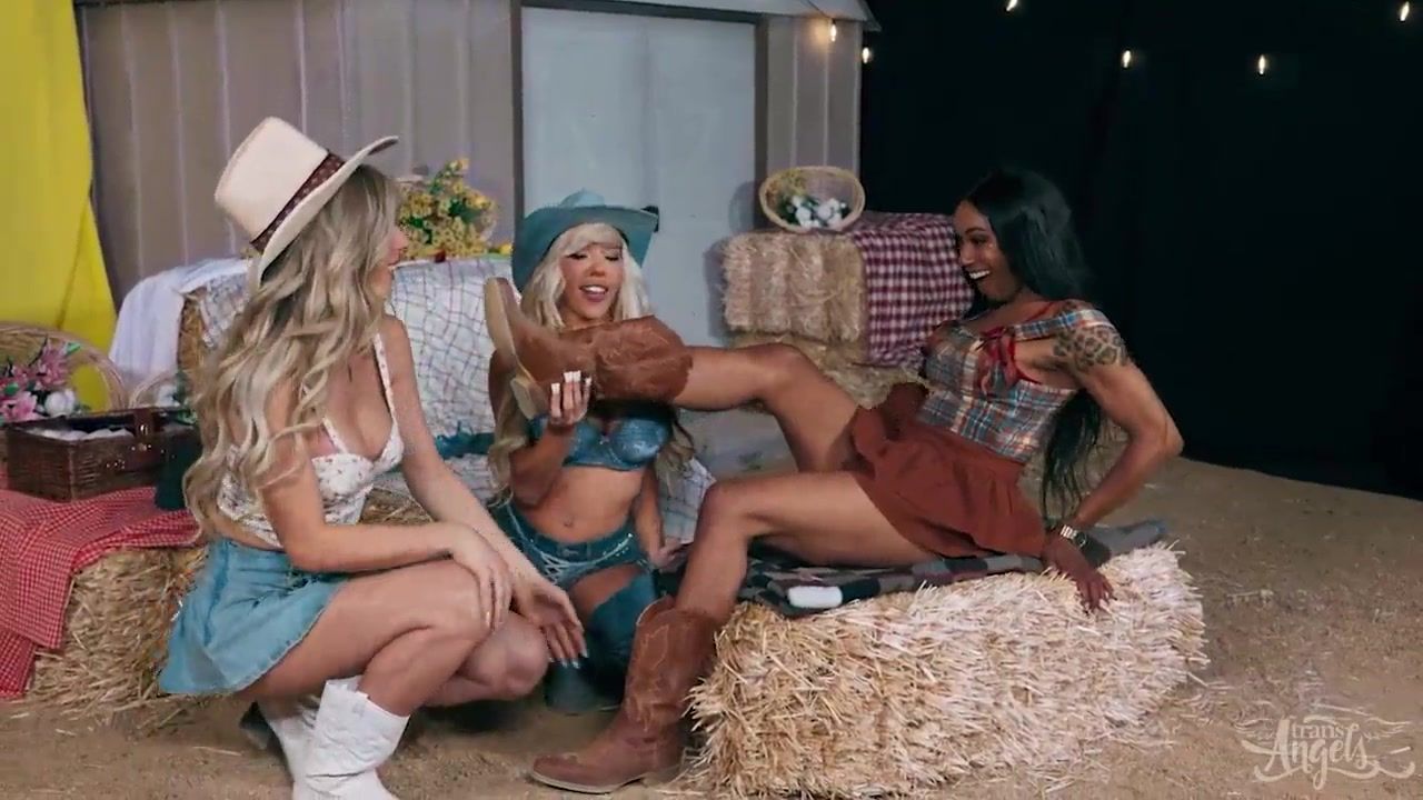 TRANS ANGELS - Trans Princesses Leilani Lei, Jade Venus, And Brittney Kade Warmth Up A Mischievous Western 3 way