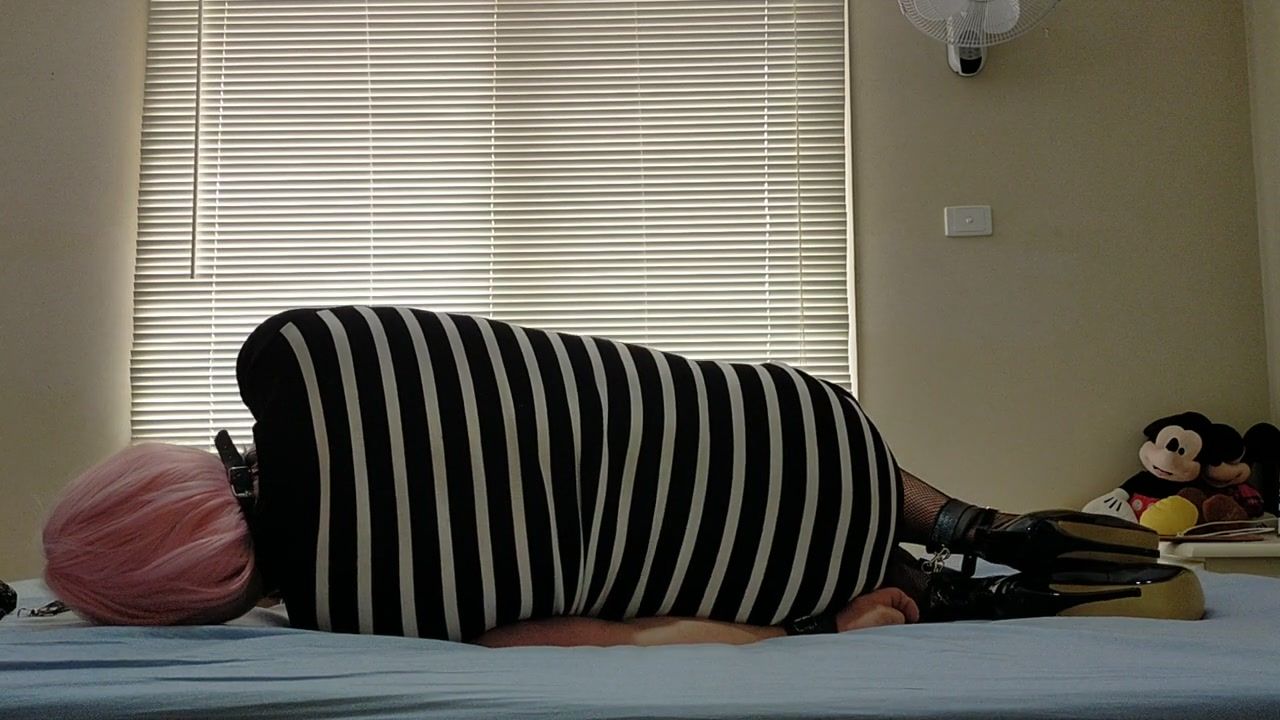 DAISY HOGTIED IN TIGHT BLACK AND WHITE DRESSdd