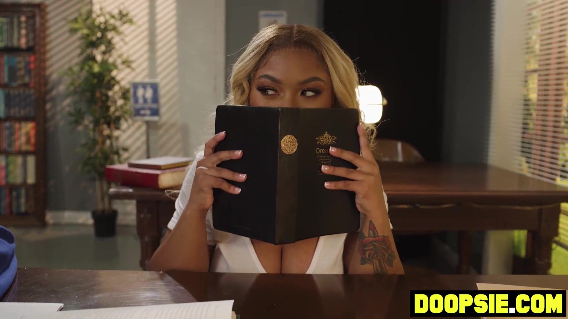 Ample udders ebony COUGAR deep-throats and plows 2 shemales at the library
