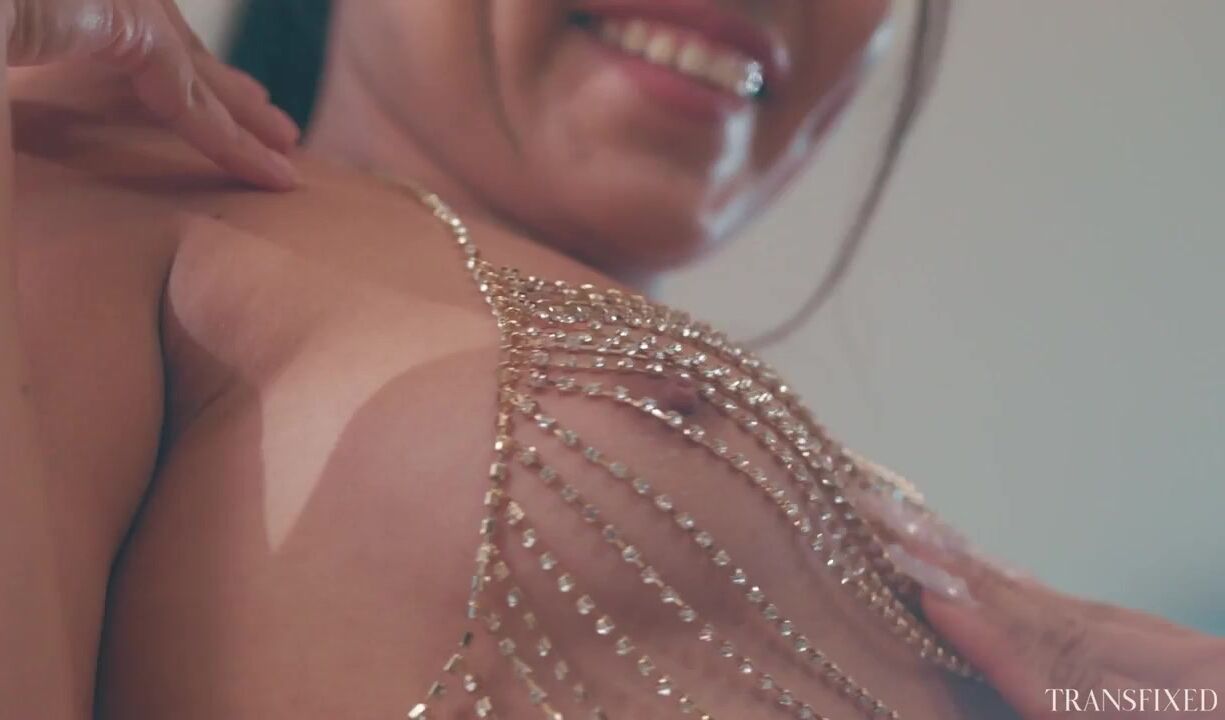 Caressing figure lotion on her humungous transgender princess latina bumpers and h...