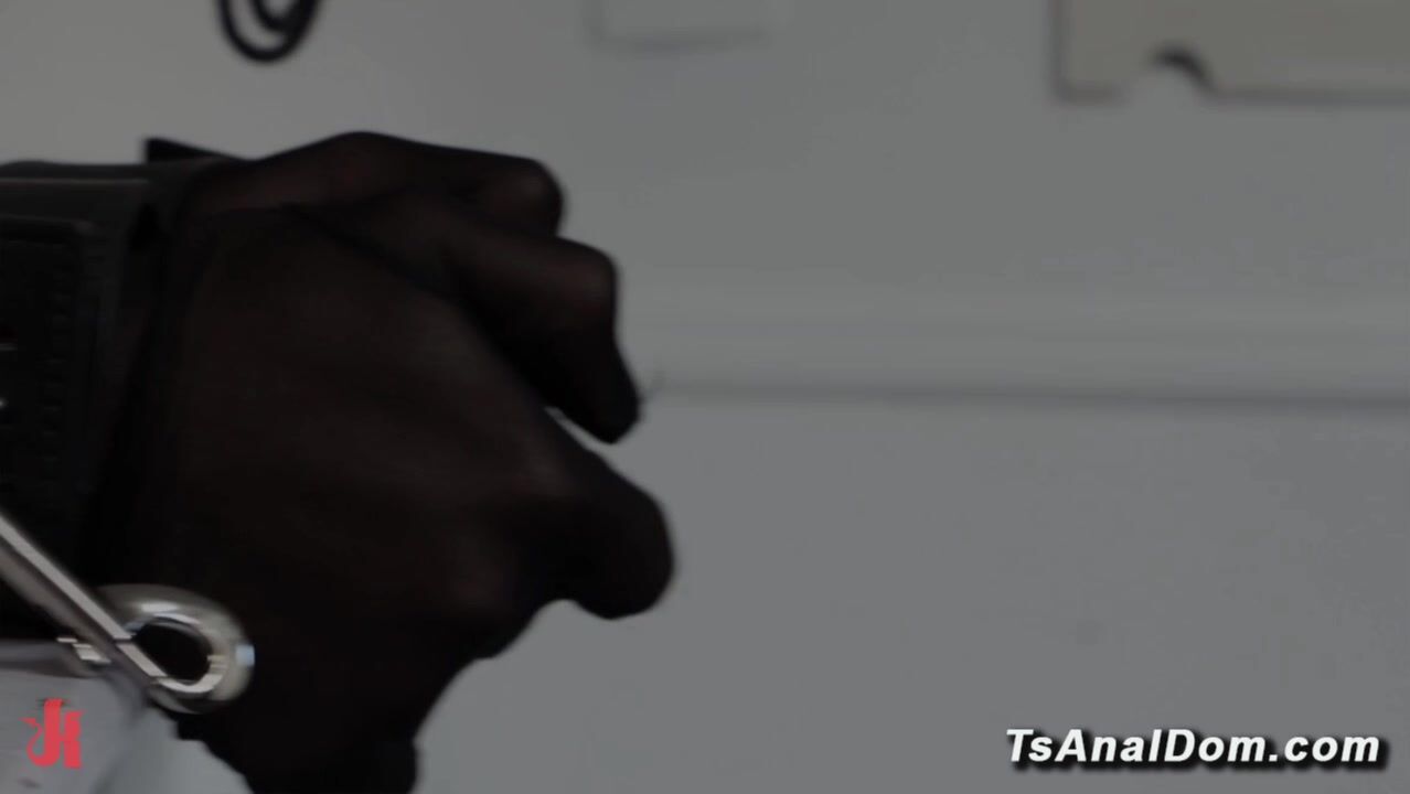 Shemale Pixi Lust waits nervously bound in an abandoned RV for King Noire He spanks her pink ass with floggers before deep fucking her tight asshole hard until he cums all over her