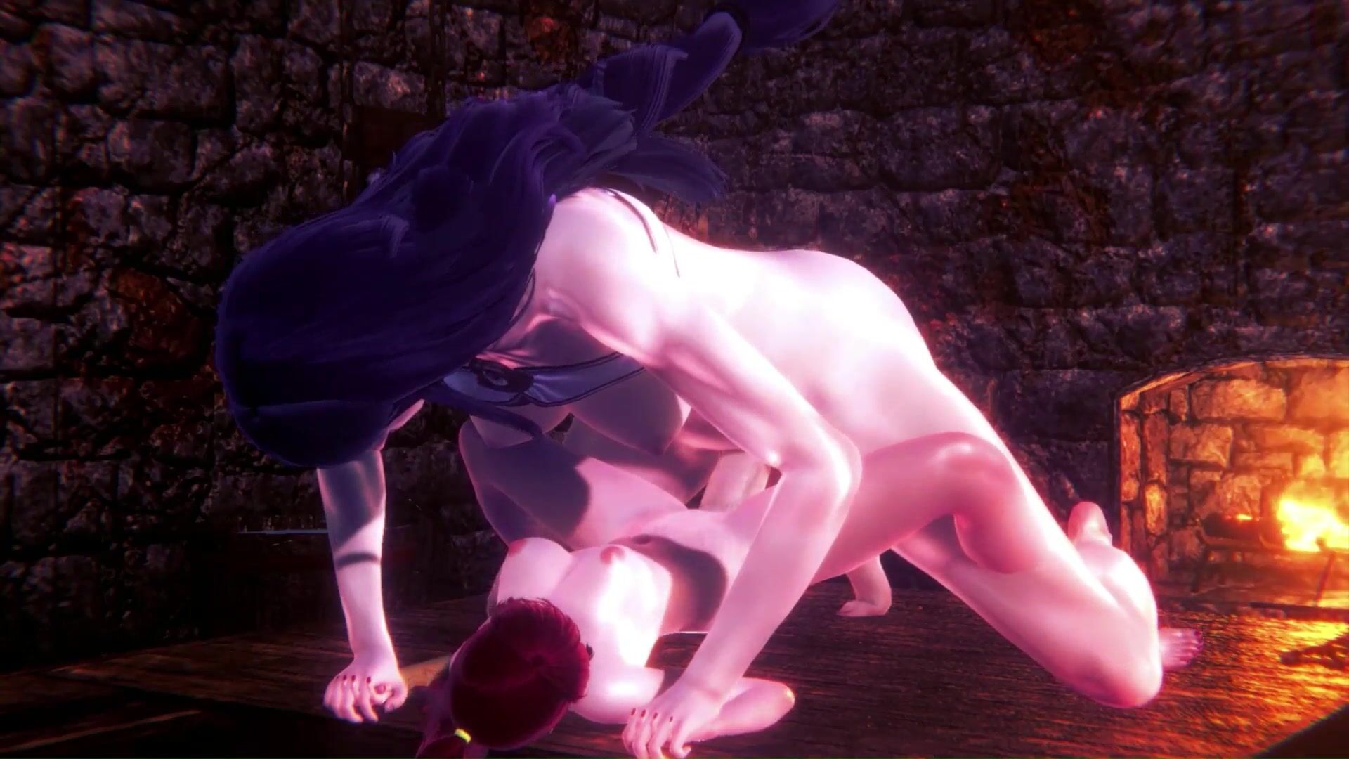 Shogun Raiden femboy cosplayer plays with ginormous fake penis