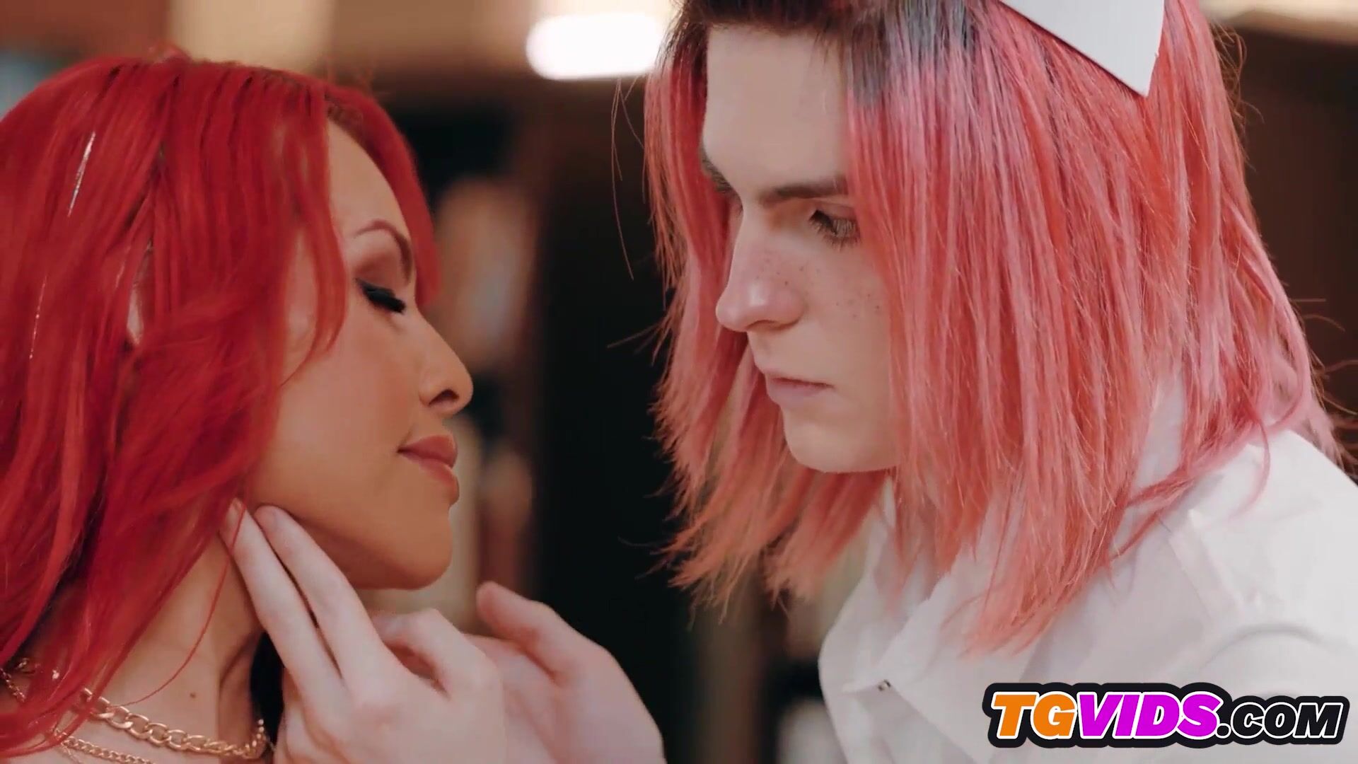 HYPNOTIZED Sexy Trans Stunner Receives Corporal Check-Up From Buxomy COUGAR Medi...
