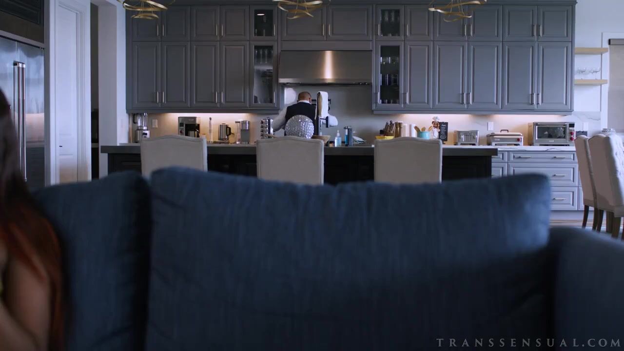 Redhead shemale Ariel Demure receives blowjob before drilling her black stepson