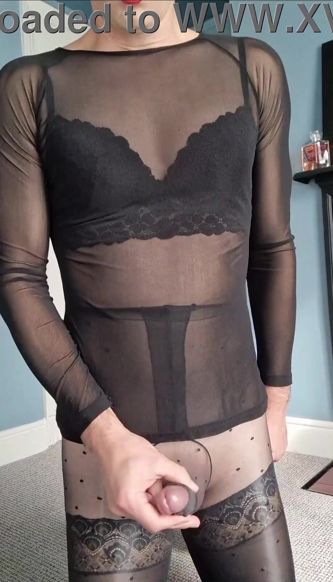 HUMUNGOUS CUMLOAD, ladyboy with fantastic long gams in shiny tights and nyons