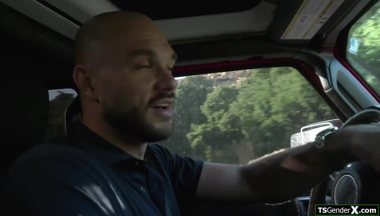 Transgirl Claire Tenebrarum needs a rails and will deepthroat manmeat for it.It doesnt take long and the petite funbags tgirl sucks his monstrous spunk-pump in his van