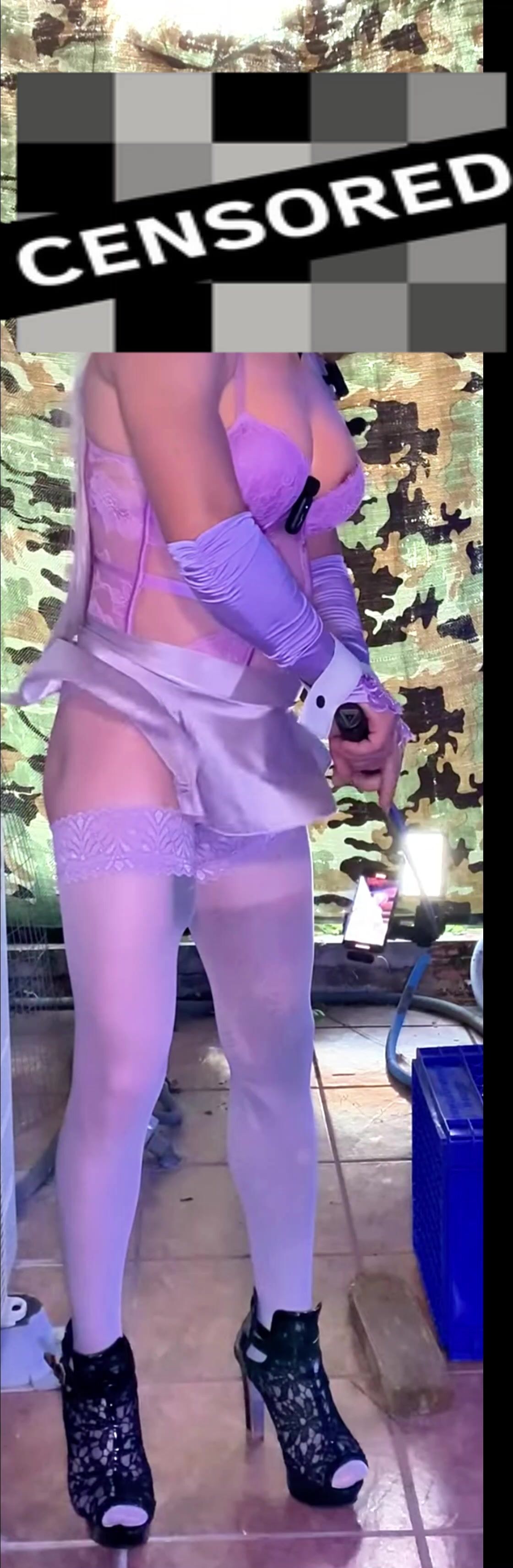 cute femboy very sexy stocking lingerie showing his panties outside