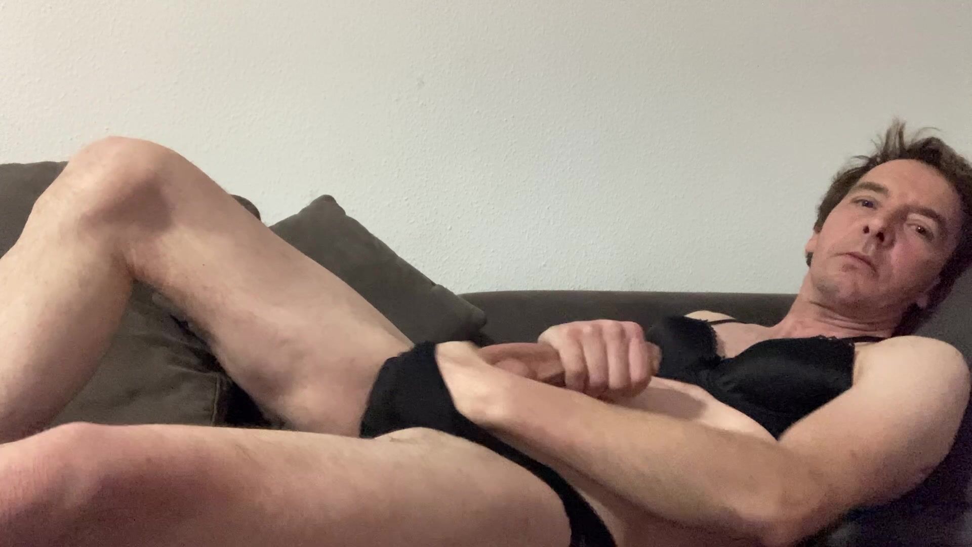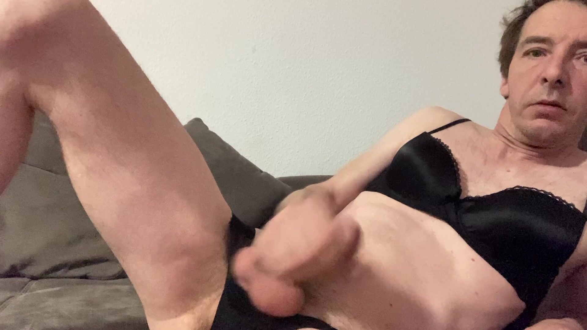 Lars Damberger wichst seinen harten penis in schwarzer frauenunterwäsche