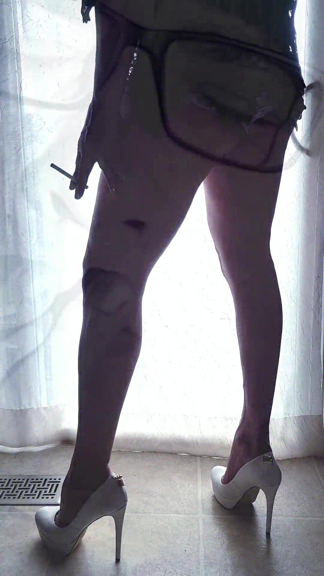 smoking sissy whore allurement in platform stilettos & underwear
