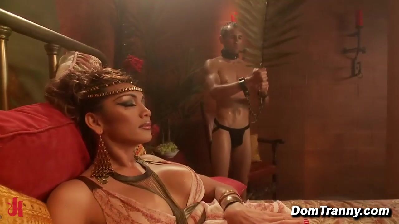 Yasmin Lee is a gorgeous trans queen in her desert palace her well trained fan slave worships her feet and body she teases him with her mouth before using her hard cock to fuck his tight ass she dominates him until she is ready to unload her hot cum on hi
