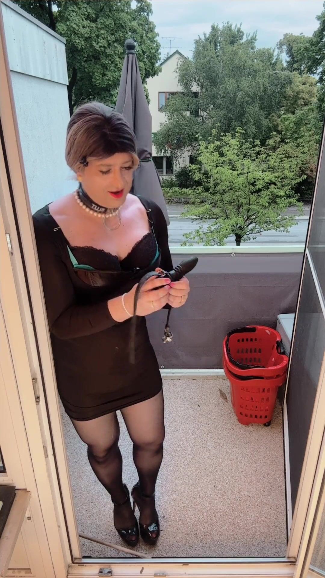 Sissy taunting on balcony