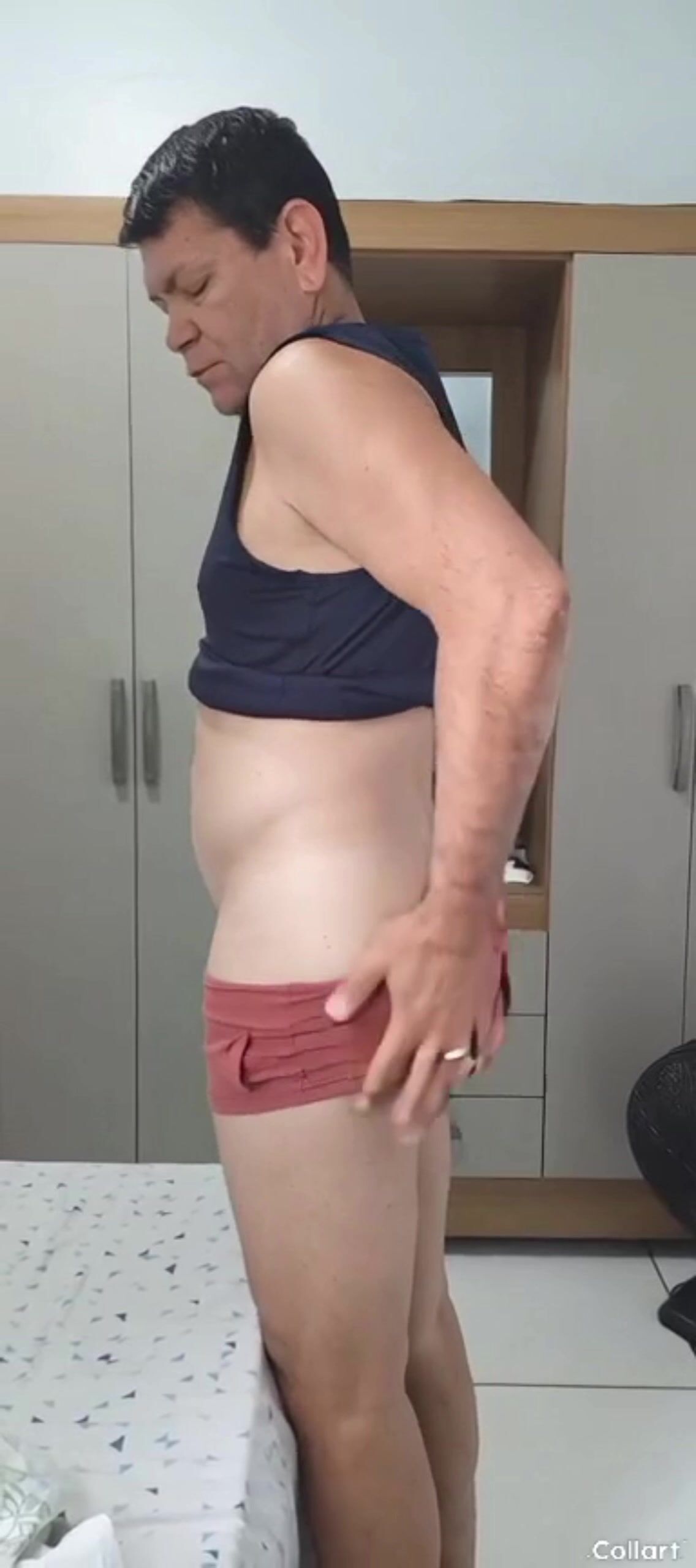 Womanish she-male slides out of zebra underwear and drains off