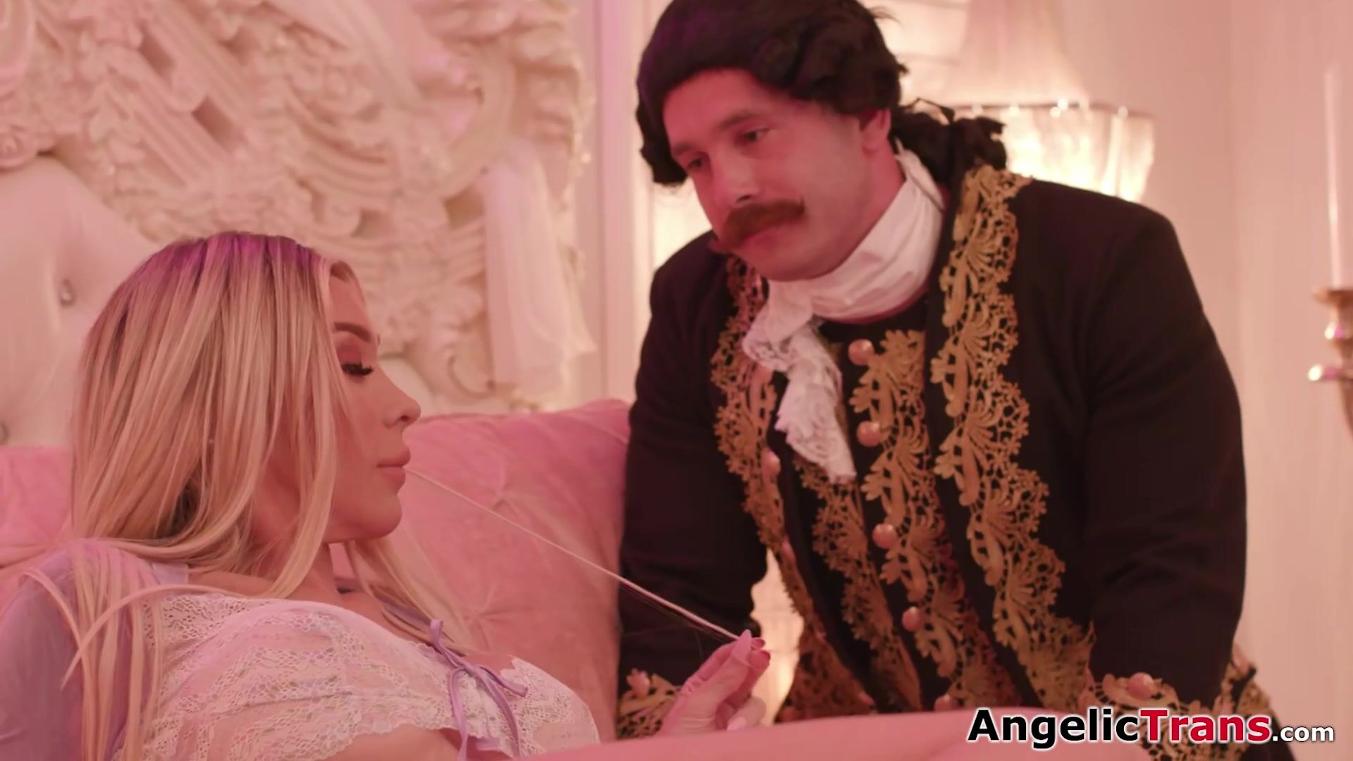 Busty trans princess Aubrey Kate wants to suck off her servants big cocks.The big tits shemale bareback anal rides while getting a deepthroat blowjob.The big boobs blonde royal tranny enjoys that dick up her ass and licks one in her mouth as well