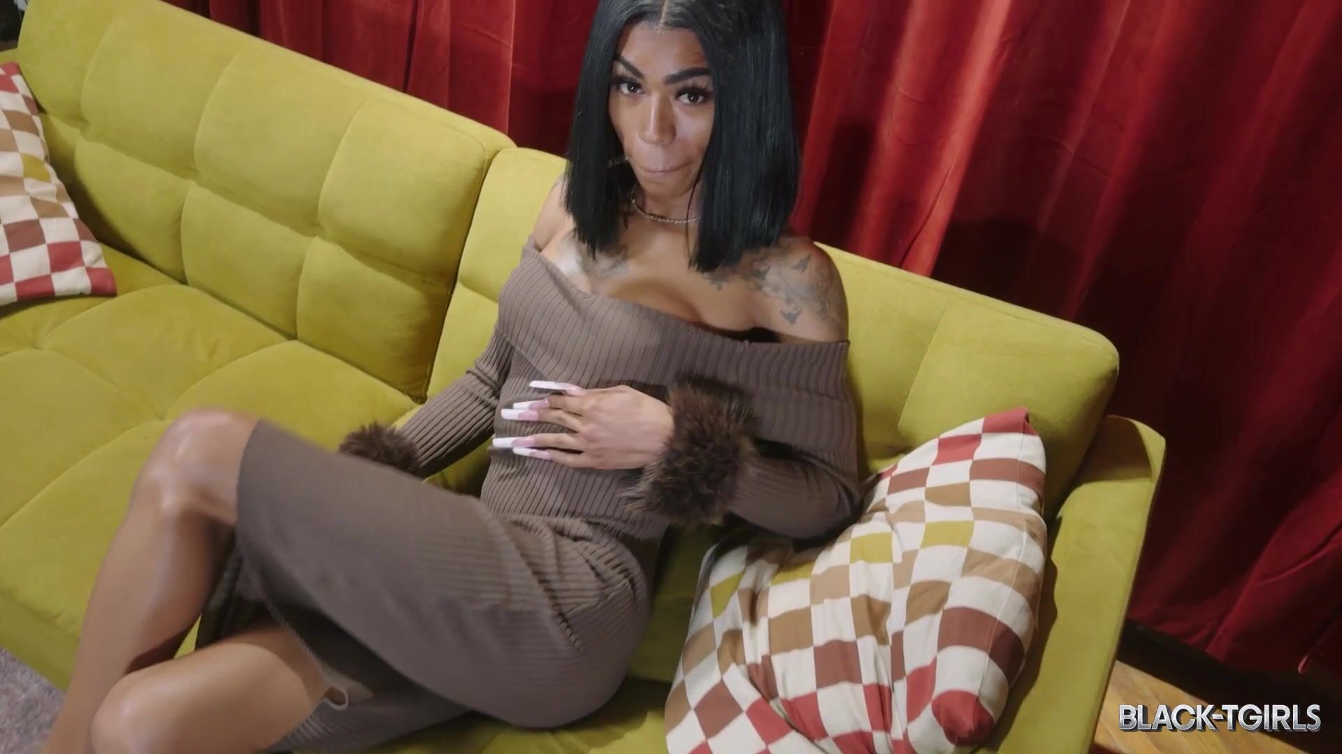 BLACK TGIRLS - The Lovely The Nymph Flaunts Her Goodies