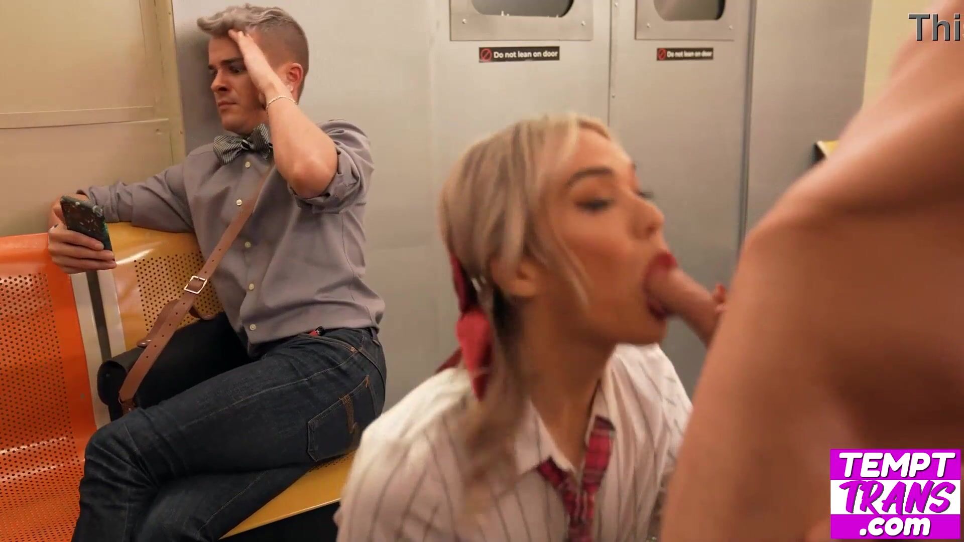 Puny orbs tgirl Emma Rose asshole licked and barebacked in a subway