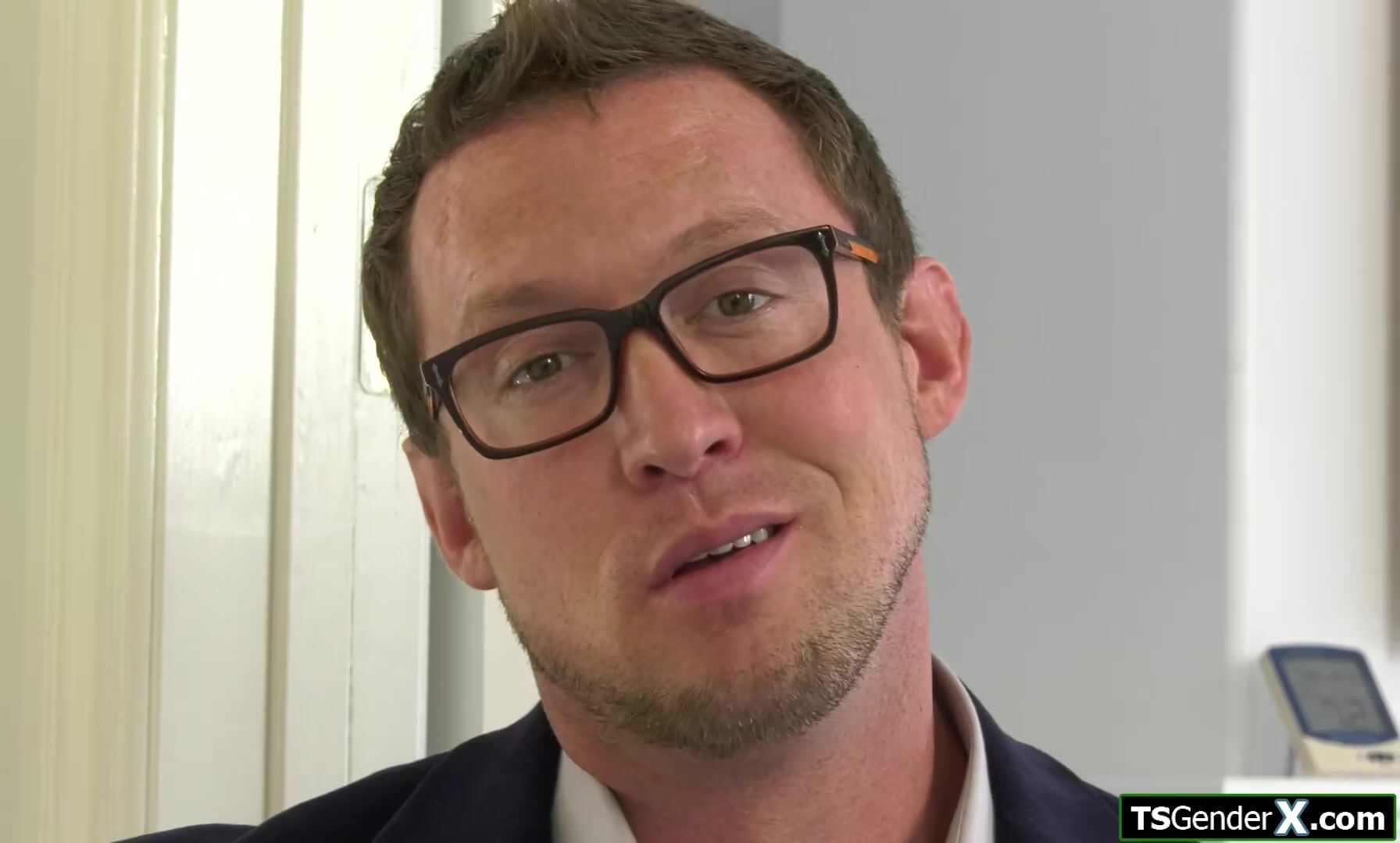 Brunette shemale coed Khloe Kay knows her landlord is watching her jerk off her tranny cock and invites him in to suck her off.The small tits tgirl deepthroats his big dick and grabs her trans boner to masturbate while she is anal barebacked by him
