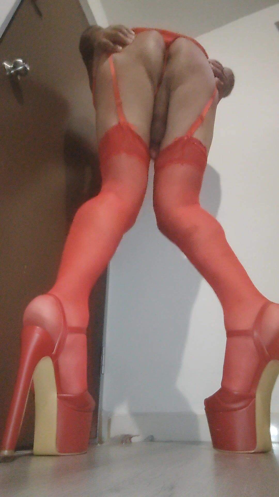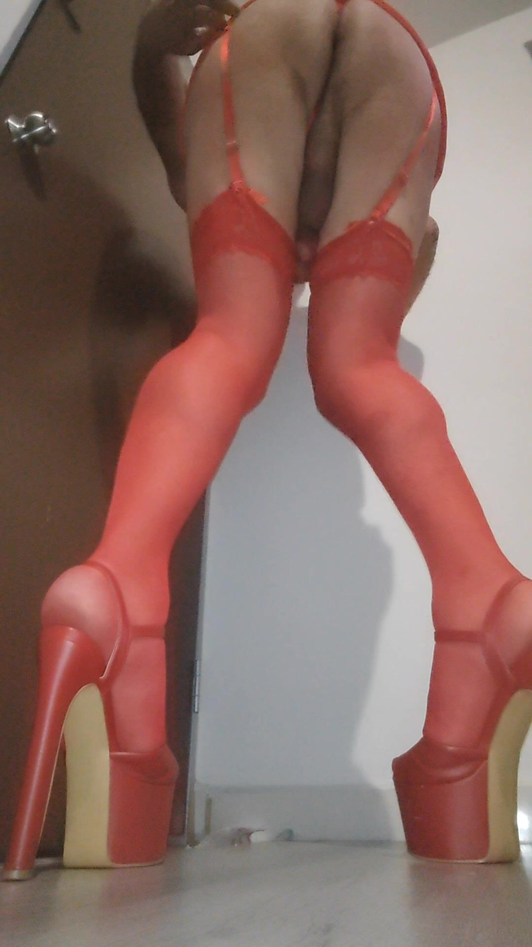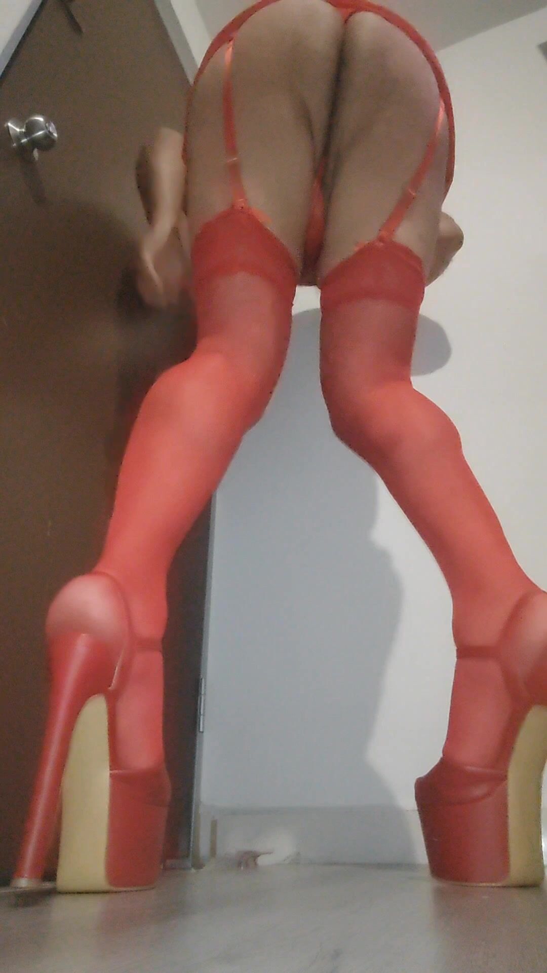 TranssexualNetwork.com - Half Asian shemale's red lingerie teasing and cock jerking