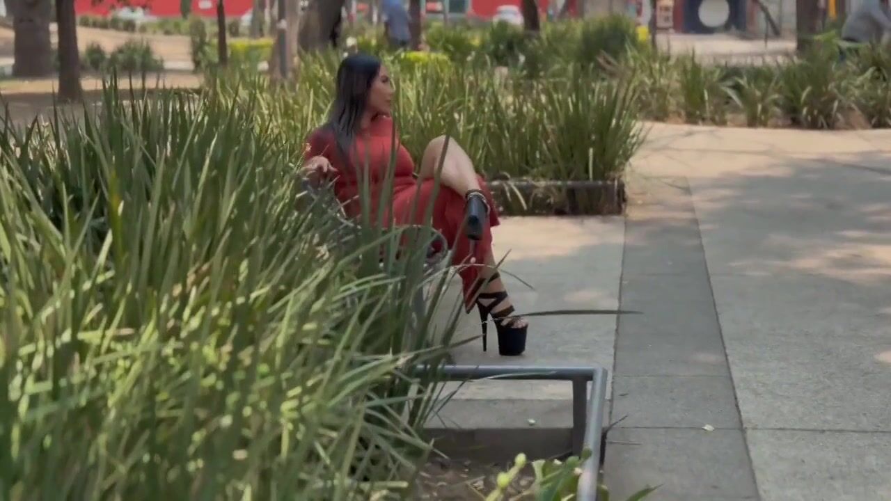 COUGAR trans damsel in crimson sundress and crimson stilettos speaks in handsome v...