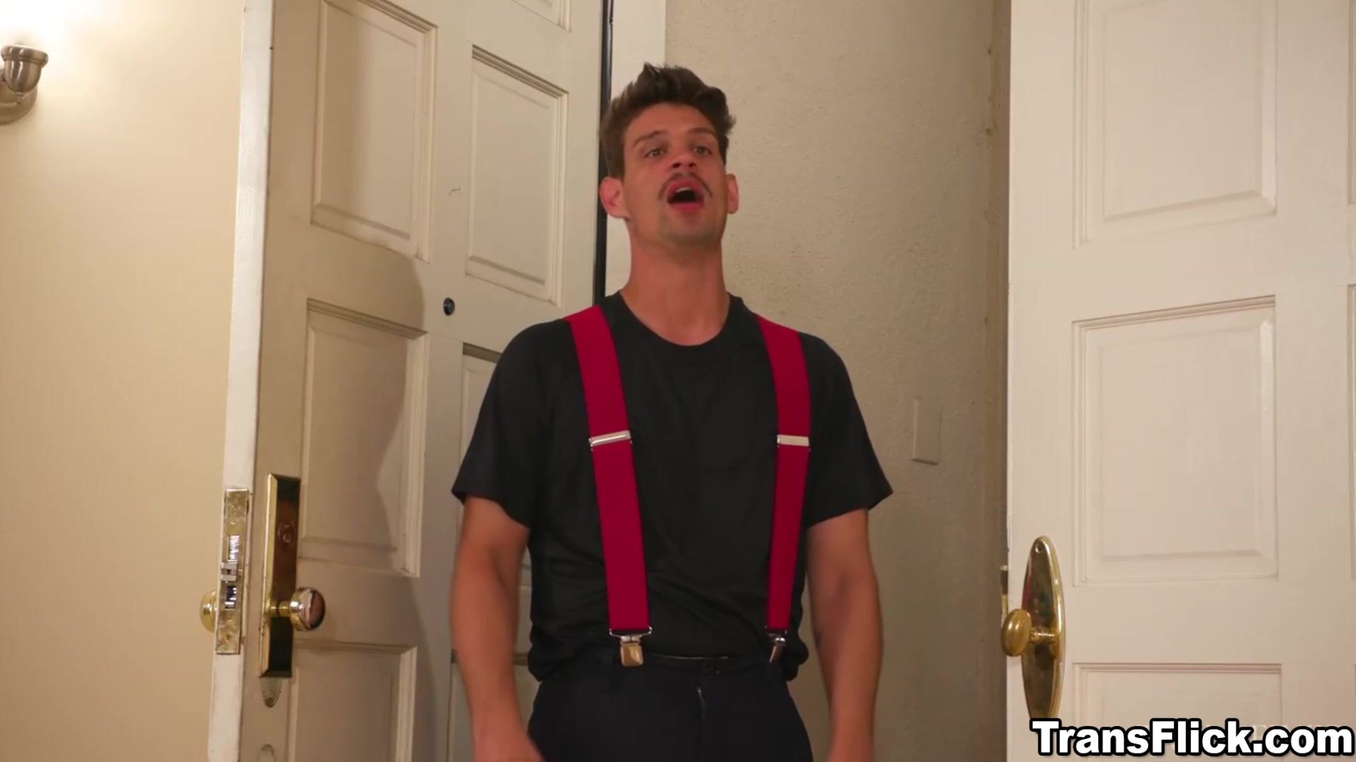 Fireman Michael DelRay slides his big fat hose in trans Avas hole