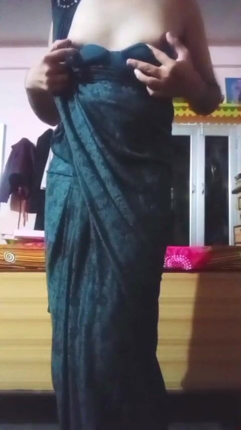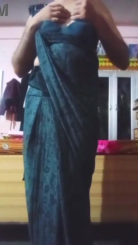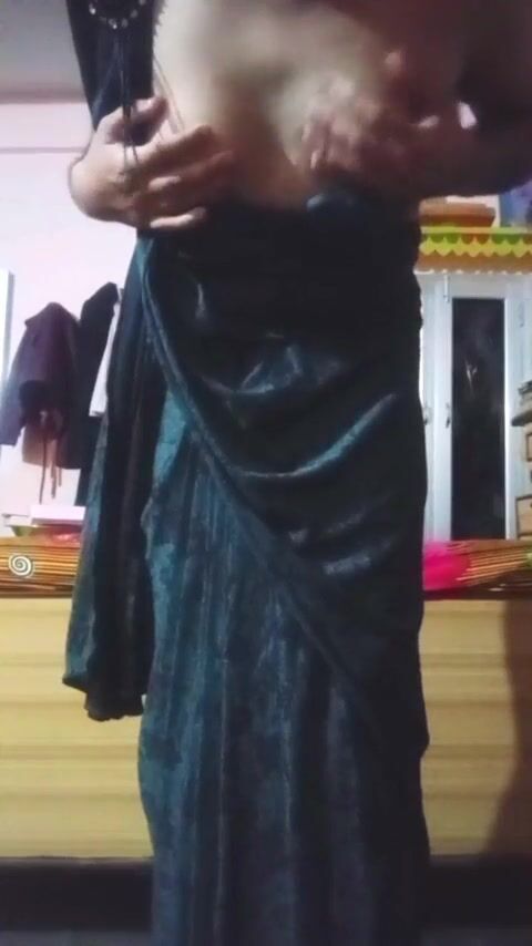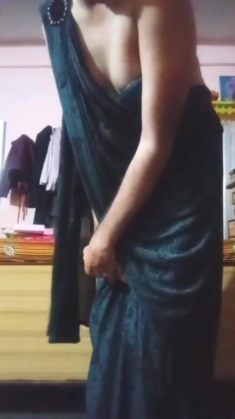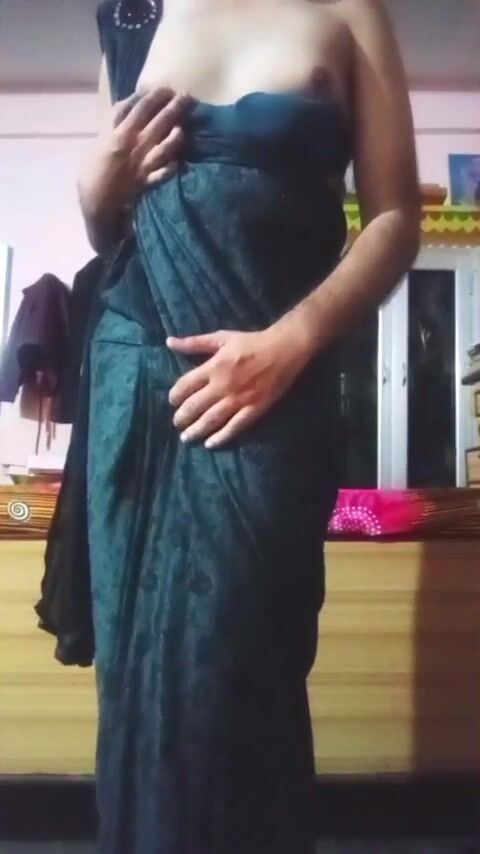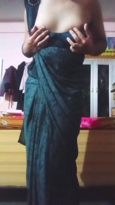 Indian Bum chum Crossdresser Bottom pressing and toying with her immense boobies in black saree real homemade gonzo fuckfest
