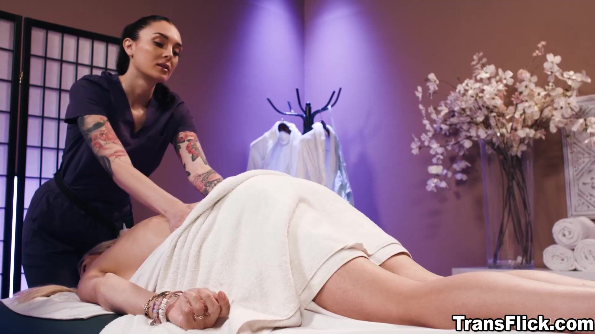 Charlotte offers her next client Aubrey Kate a free upgrade to a bolster massage to see if she likes it Not only does Aubrey end up loving it but Charlotte does too because of the sexy view it gives he. Sparks fly and they have a steamy sex session