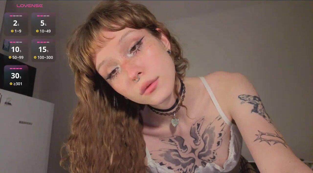 Stunning alt girl with intricate tattoos, choker, and wavy brown bangs captivates in a webcam stream. She flaunts her curves in lace bralette, fishnet stockings, and sheer panties, teasing with a pink vibrator tucked against her ass. Sensual poses, close-up views of her inked skin and playful expressions make this softcore show irresistible.