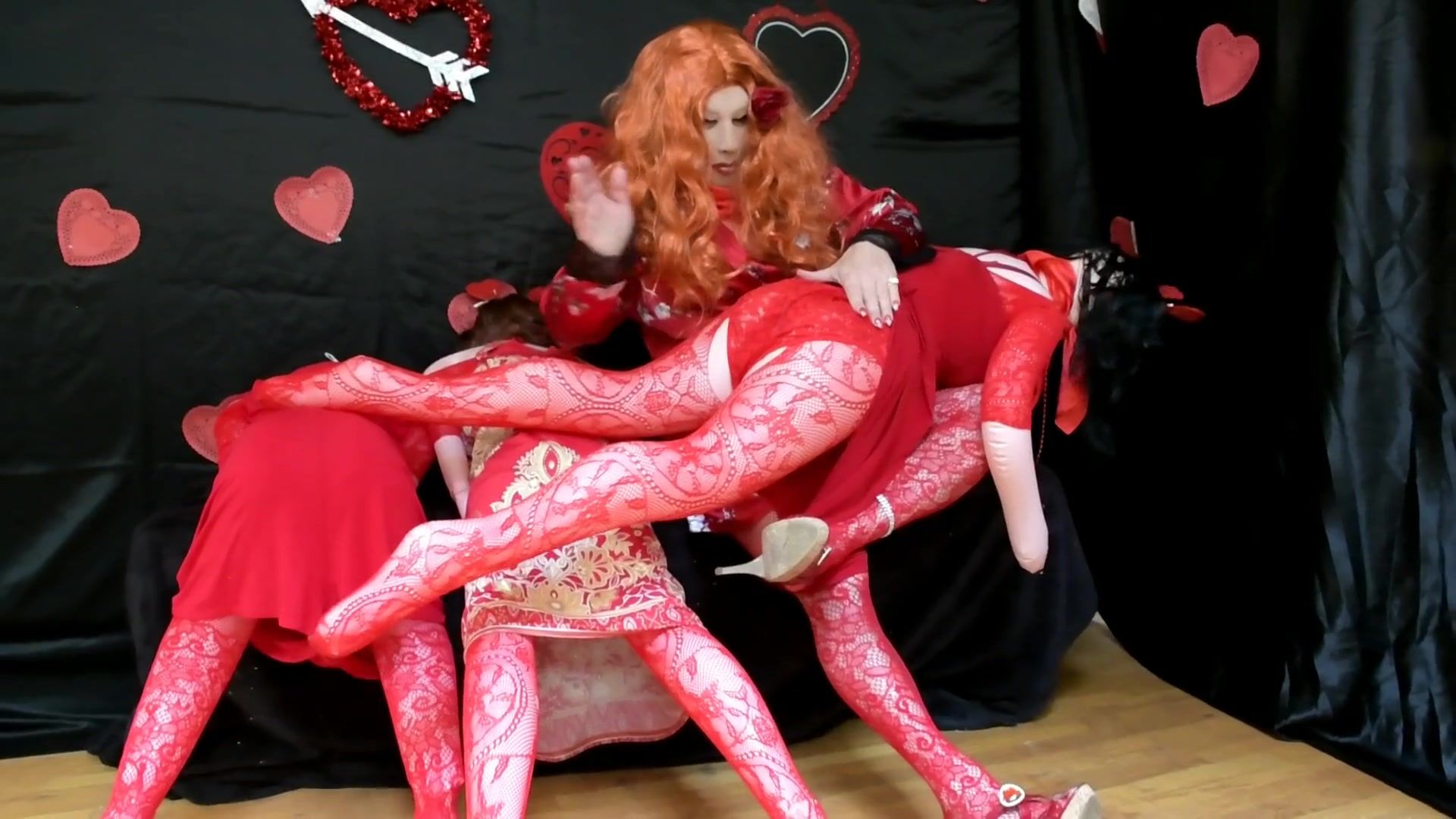 Sissy Valentines Day Costume Play with trio Gargle up Women Part 1 Sissy Dance + Jism