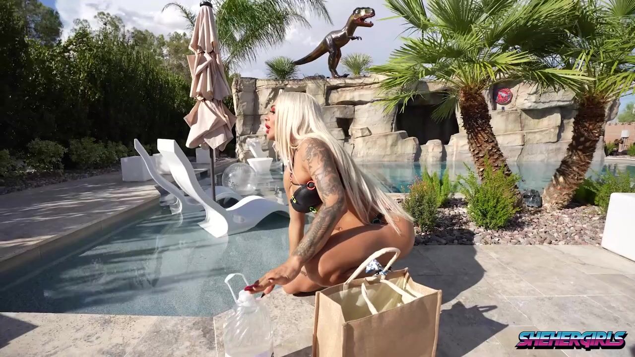 SheHerGirls - Kitana Montana Get's TGirl Phat Man sausage Surprise From Killer Pool Doll Eva Maxim