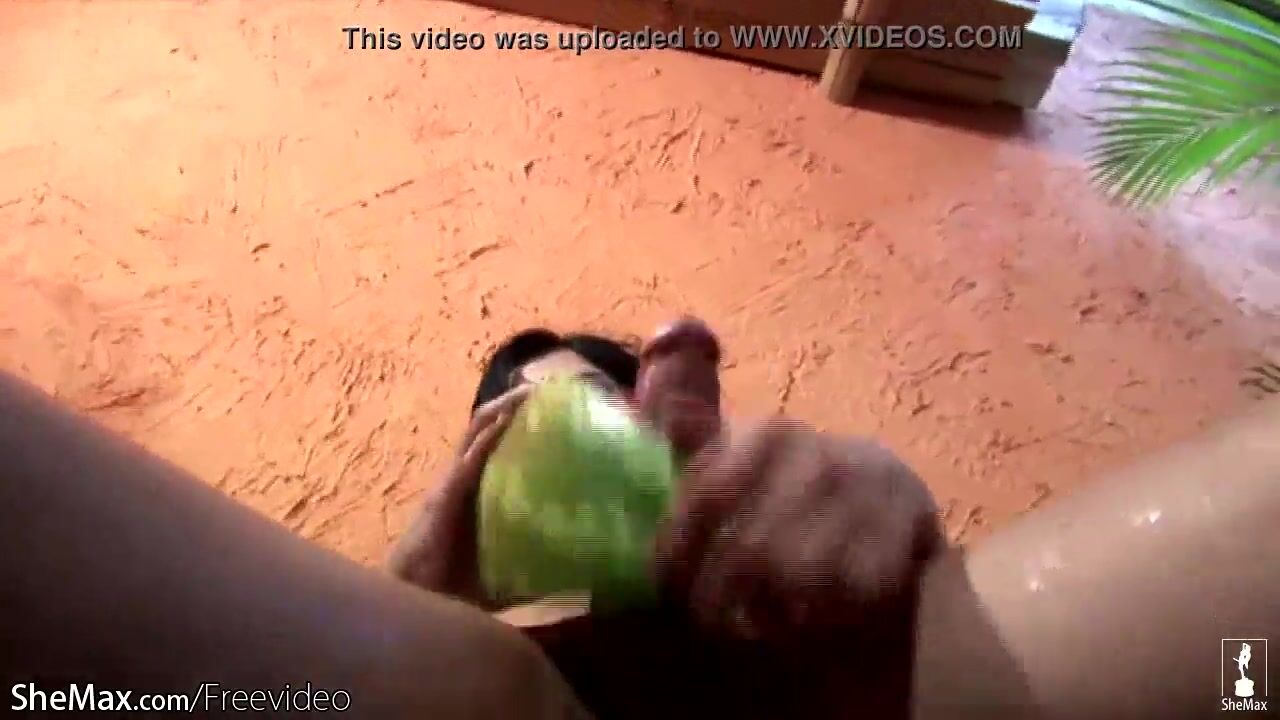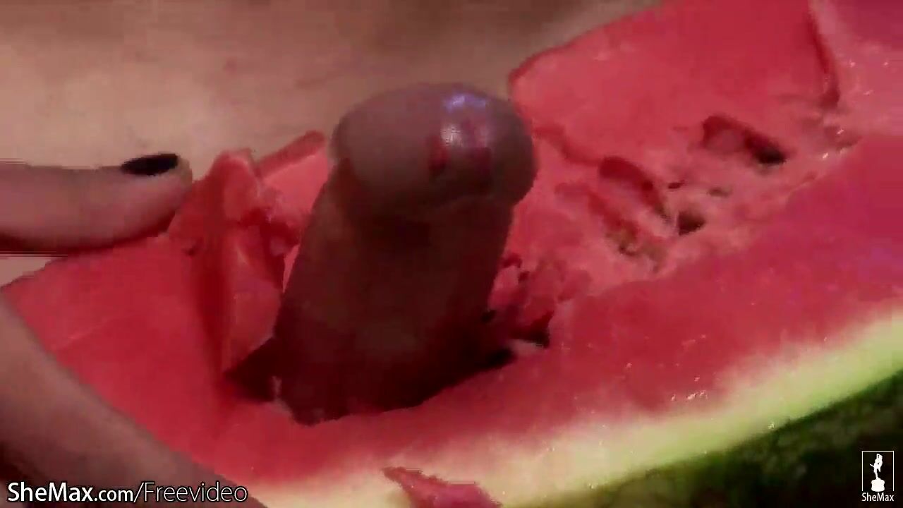 Cute ladyboy plows a watermelon so stiff that she cum shots