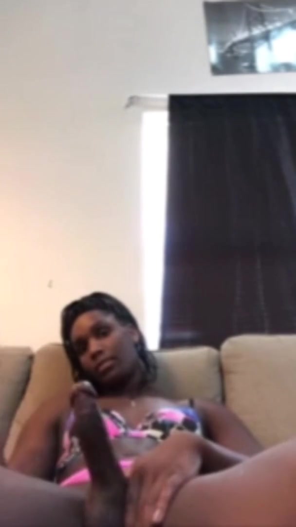 Dark-Hued Tgirl Sha Sha Plays With Her Humungous Dark-Hued Man Rod