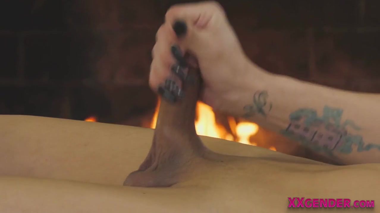 Busty tattooed tgirl riding dick and getting sucked and masturbating